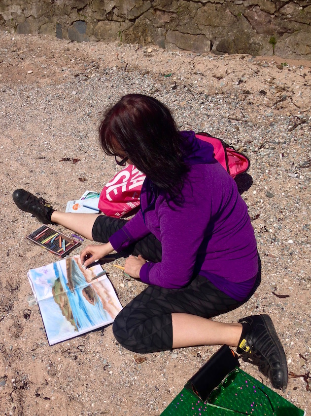 For me it was a perfect pick-me-up after my radiotherapy treatment and months of artist block. And a bit of an adventure seeing as it’s an island! I jumped on the train from Glasgow and found myself in sunny Largs in less than an hour. From there I met fellow artist Marion and drove onto the ferry for the eight minute journey across the sea.