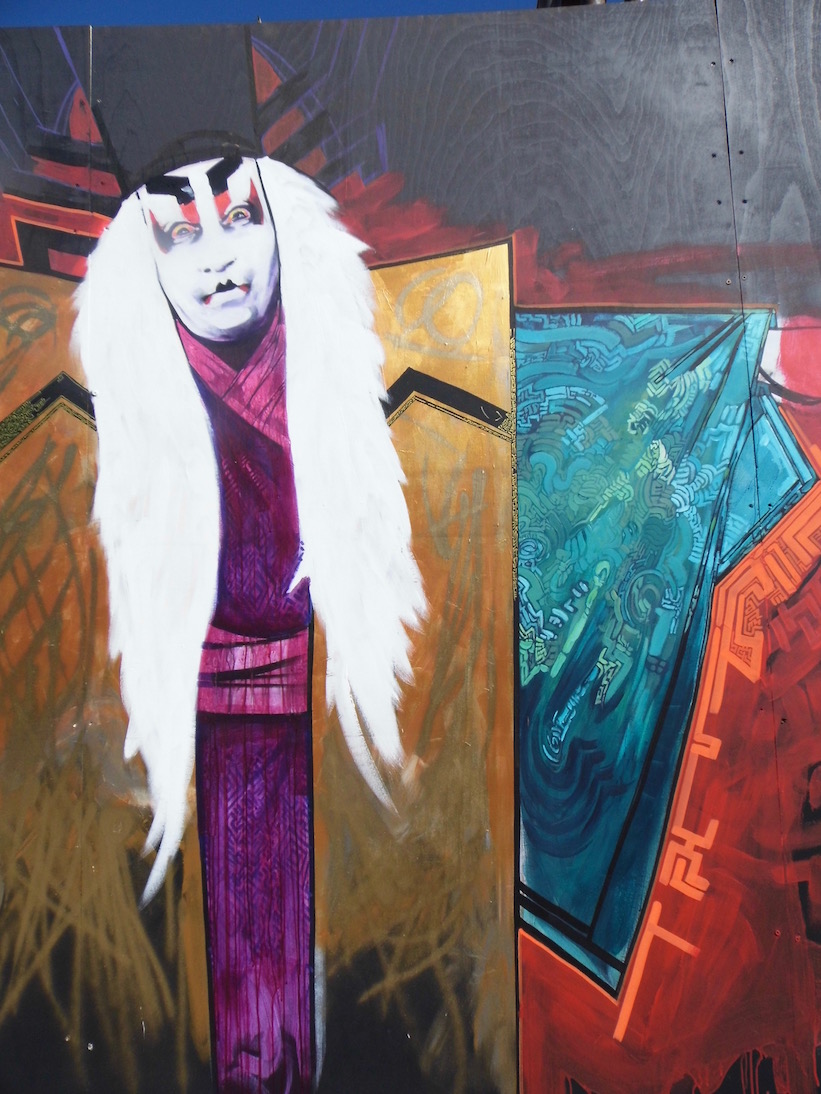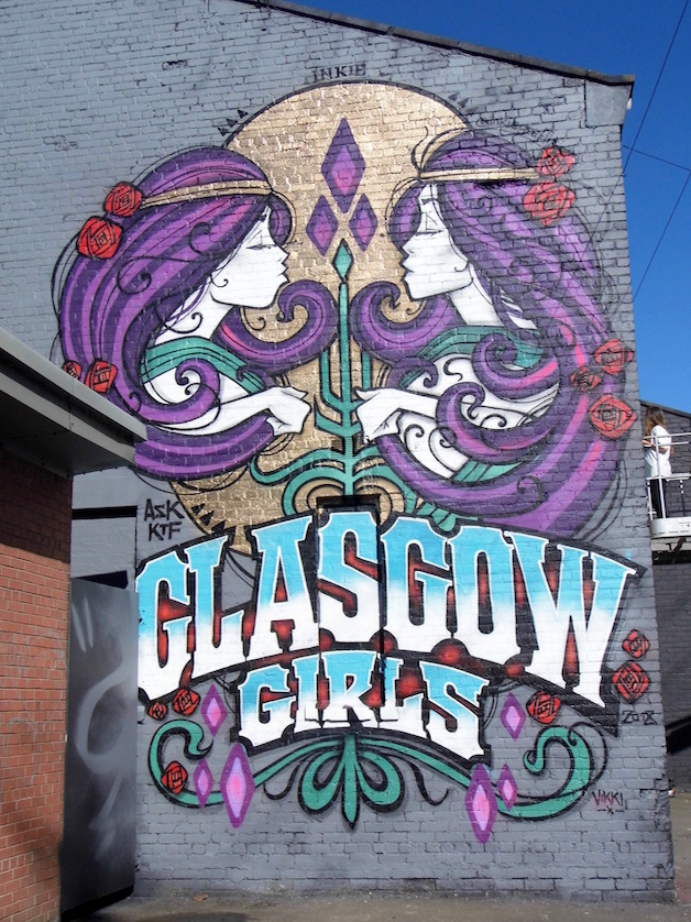 Naturally I went around snapping, and as a result do not know half of the artists. So apologies if you can see your work and feel free to let me know so I can edit and credit. I did see our pal Marcus, of course, whose Japanese kabuki performer you see above. And I loved the Glasgow Girls piece, artist Linzi paying homage to the city’s Art Nouveau legacy.
