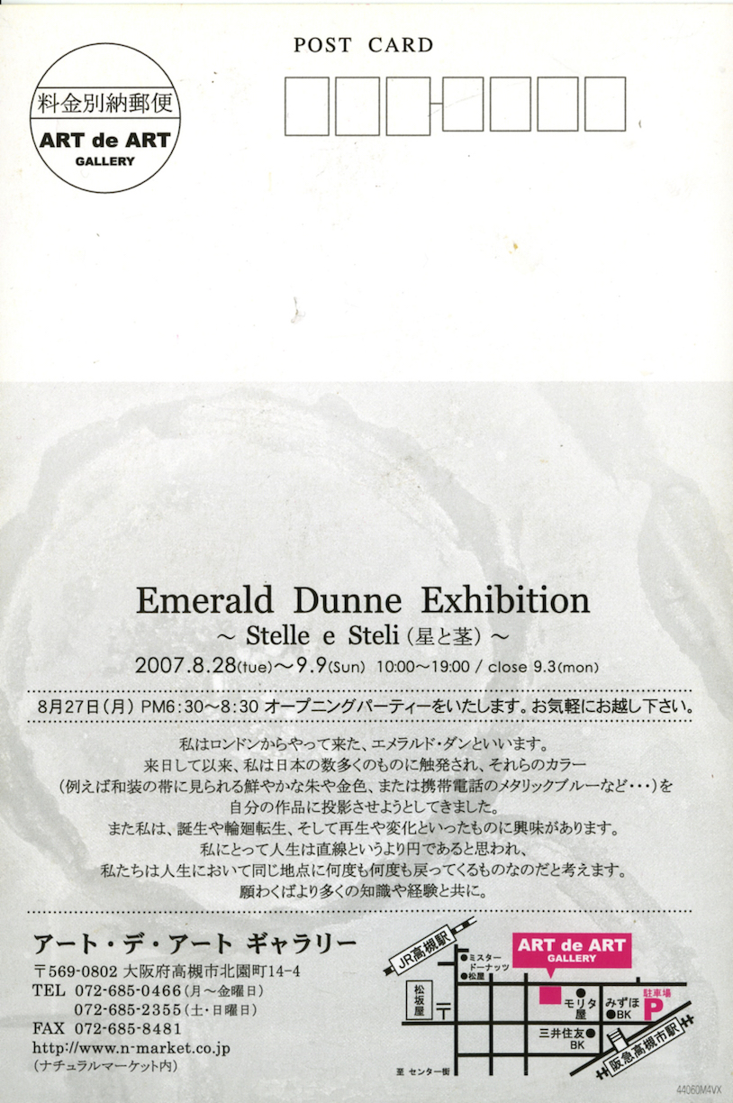 It was at the Art de Art Gallery in Takatsuki and was one of the highlights of my time there. Although I’d only been painting for eight months, the gallery offered me a short stint. Professional leaflets and postcards were made, contact lists mailed… and people came to the show!