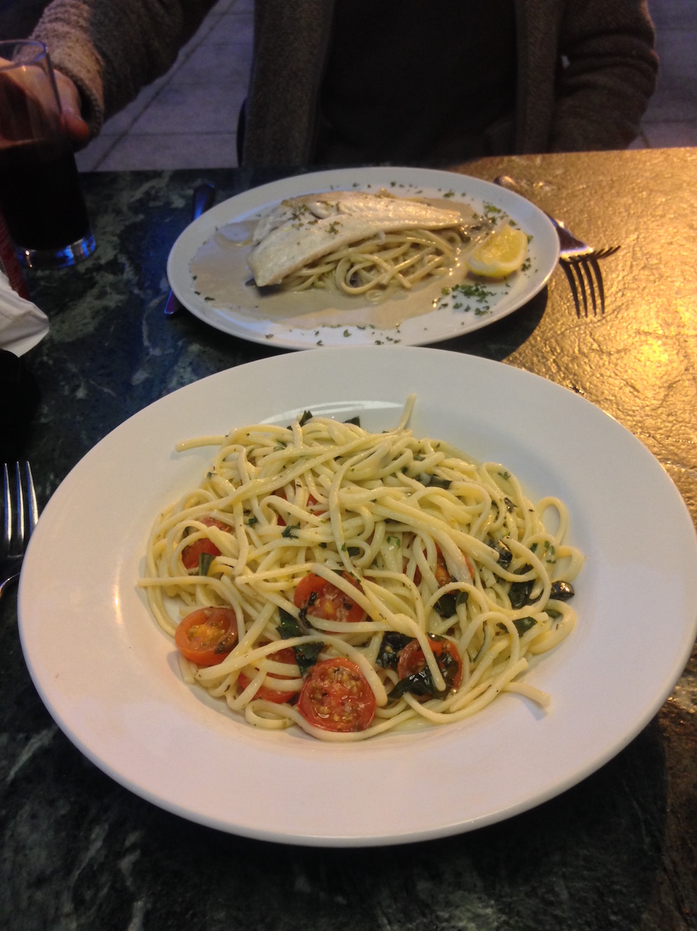 You certainly won’t go wrong if you’re a seafood fan. We visited Piazza* on the pier where we had a window seat with a view. A lovely setting watching the lights of the bay twinkle as it got darker, plus eating out there didn’t break the bank. Stephen chose a sea bass dish while I picked the Focaccia followed by Linguine al Parmigiana – not bad and filled us up. There’s also the Cuan Mor* which I’ve seen rated quite well (photo earlier). Basically if you’re a vegetarian be aware of the accolade the town has. Unless you’re pescatarian, in which case you’re in for a treat. If not you’ll have to be happy with the veggie options at regular restaurants, though luckily everywhere has those these veggie-friendly days.