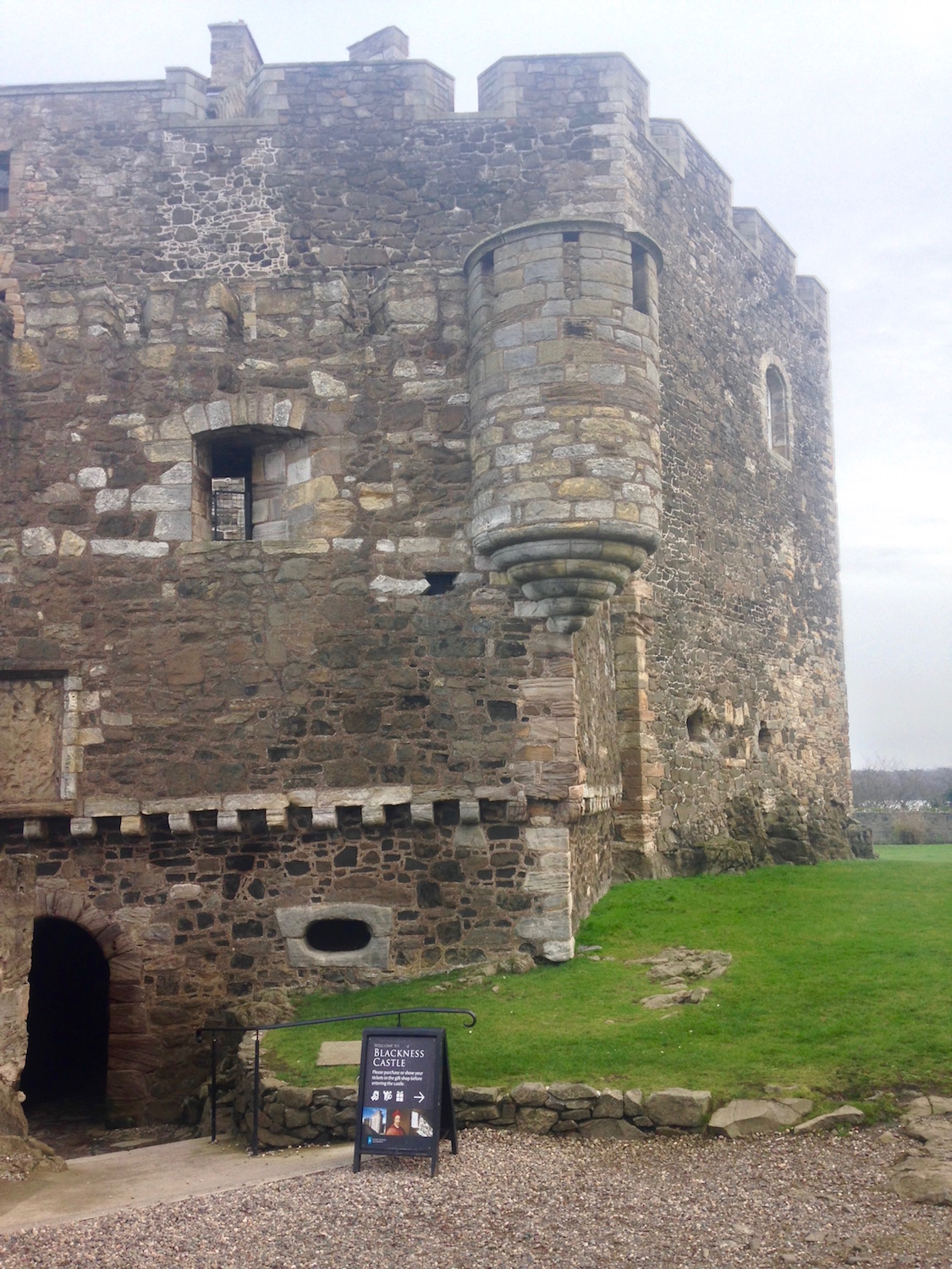 An impromptu visit as we were outwith Glasgow delivering a painting. We’d sort of planned a trip to Rosslyn Chapel. But December days are short at this latitude and it would soon be dark. Since Blackness Castle was a nearby alternative, off we zoomed.